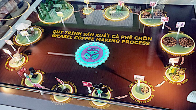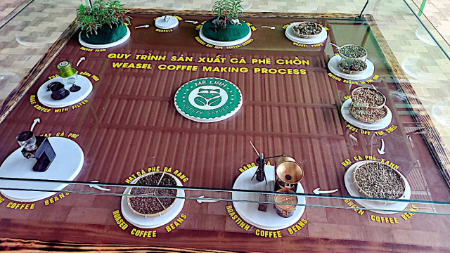 Ein Highlight ist die Kaffeeplantage Me Linh Coffee Garden. Man kann nicht nur verschiedene Kaffeesorten probieren, sondern auch die Kaffeepflanzen näher anschauen. Das Beste ist jedoch das Wieselgehege. Die Wiesel dienen zur Herstellung des Wieselkaffee. Die Tiere fressen sehr gerne Kaffeebeeren und die ausgeschiedenen, unverdauten Bohnen werden dann in einem speziellen Verfahren gereinigt, verarbeitet und geröstet. Die Wiesel werden dort jedenfalls verwöhnt und scheinen sich sehr wohl zu fühlen.
