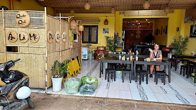 Im nächsten kleinen Ort finden wir ein tolles Restaurant, das Sommerrollen (natürlich zum Selberrollen) anbot, außerdem selbstgemachtes Joghurt. Toller Zwischenstopp.