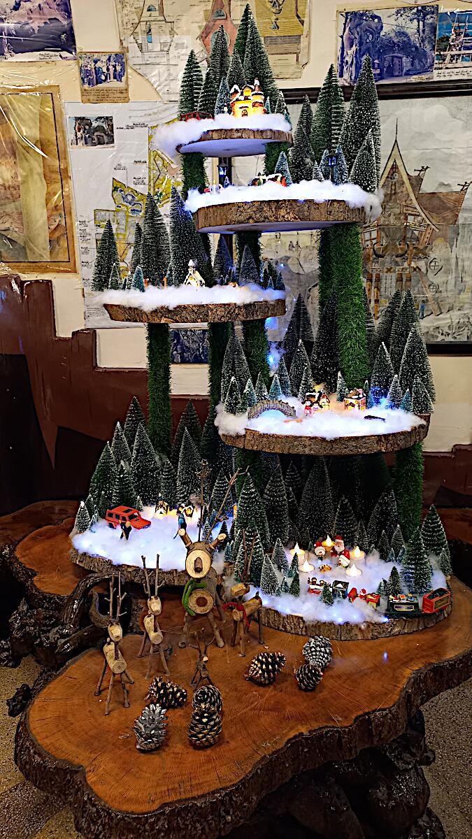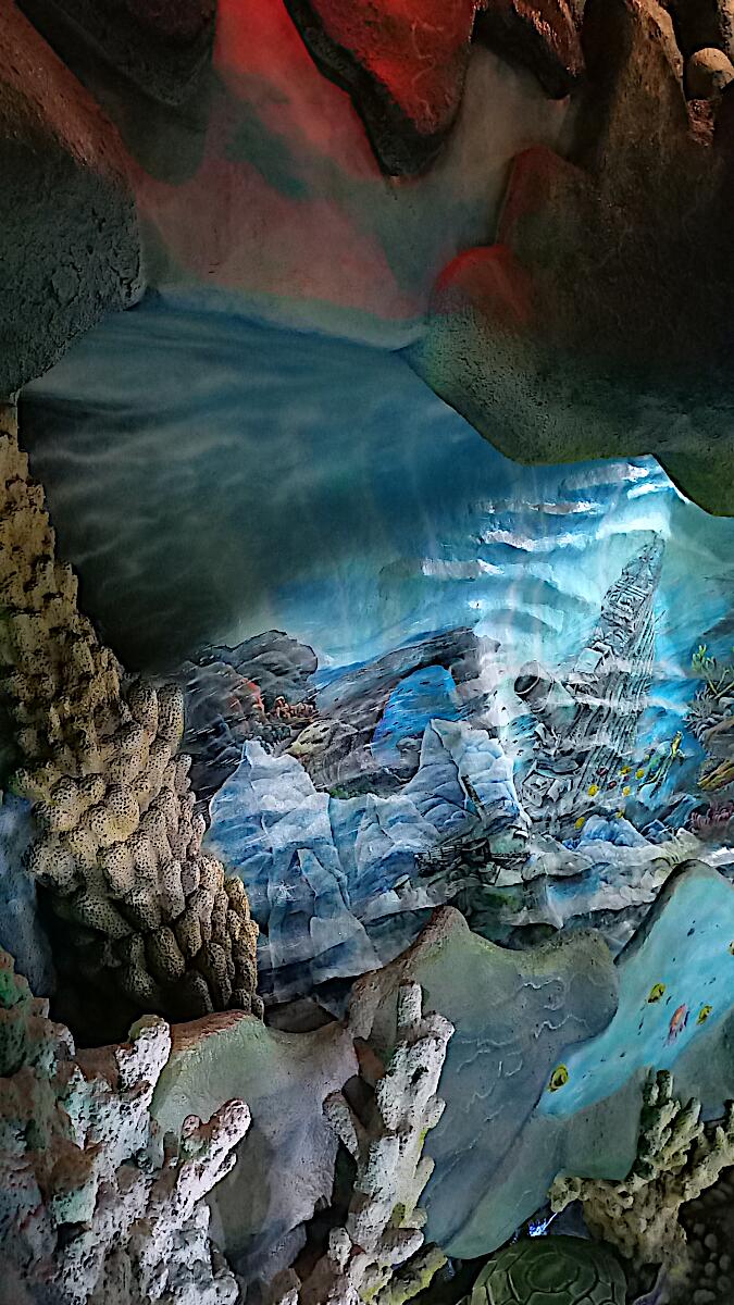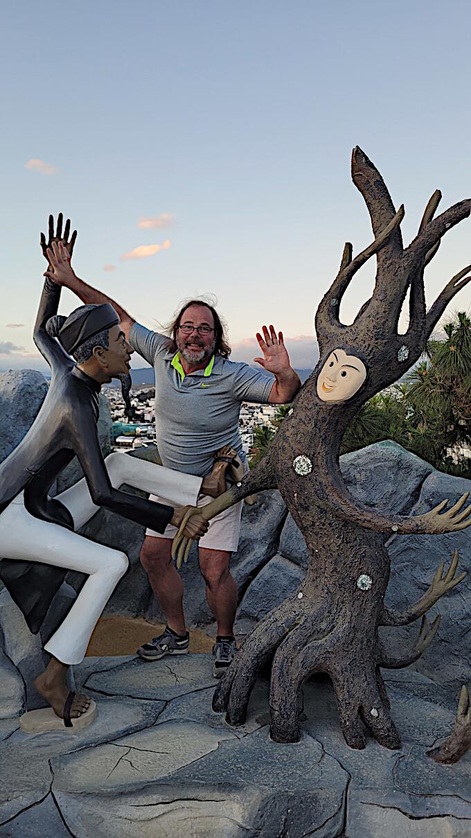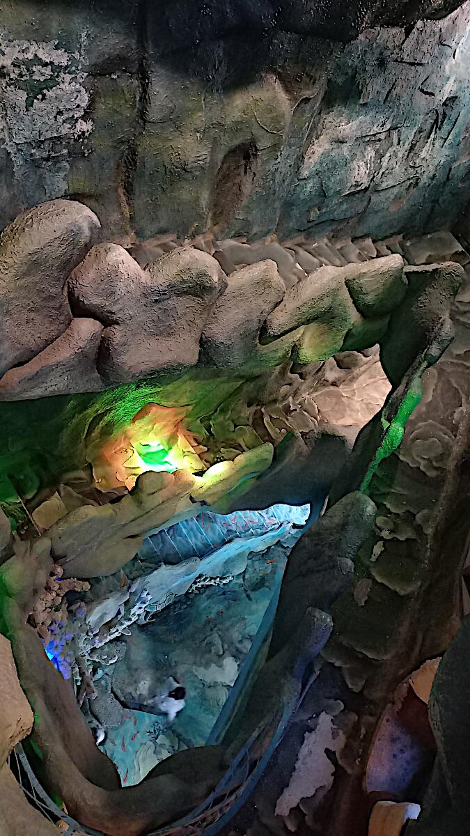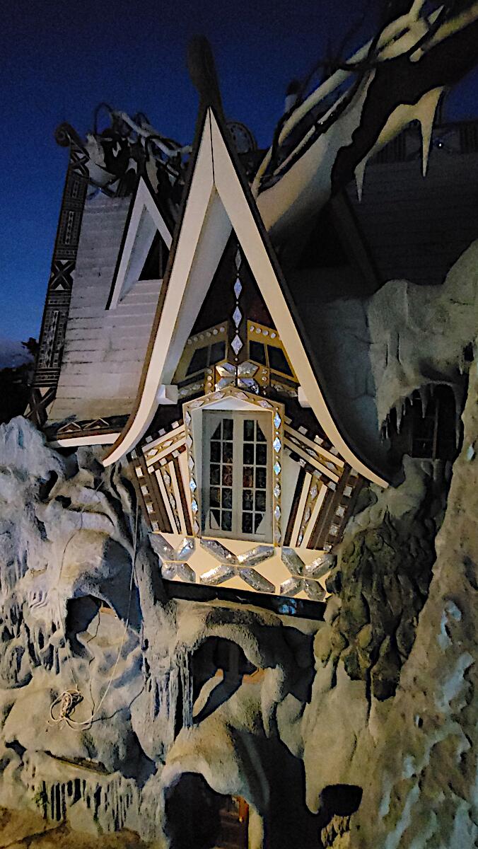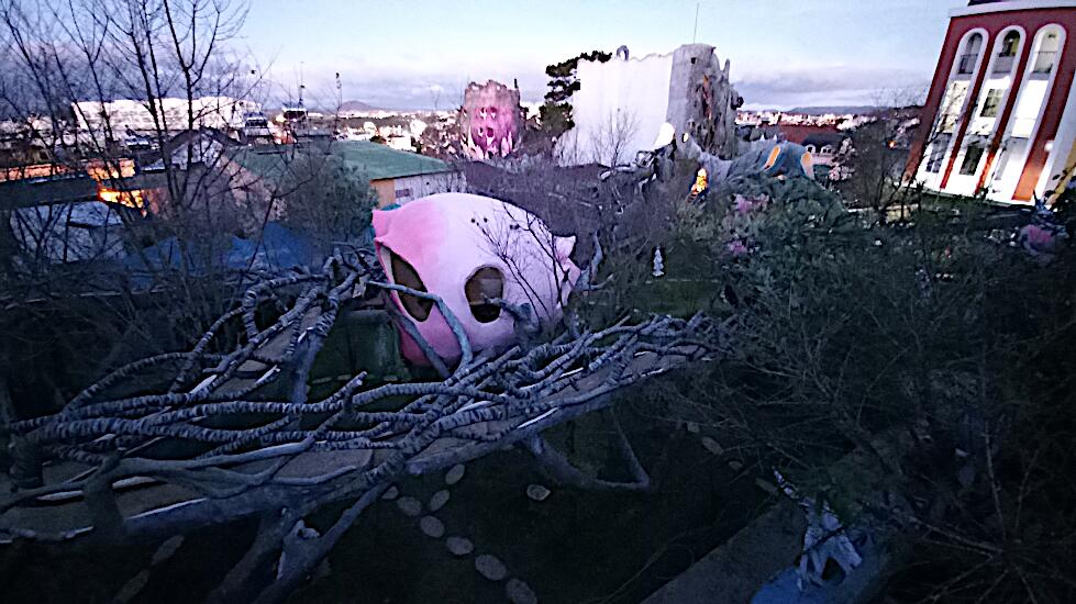 Das kann man nicht beschreiben, da sprechen die Bilder für sich. Einen Baustil kann man nicht erkennen, das Innere der Gebäude besteht aus Höhlen, verschlungenen Gängen, gewundenen Treppen, skurrilen Möbeln und Tierstatuen. Wir haben sehr viel Spaß beim Erkunden des Hauses.