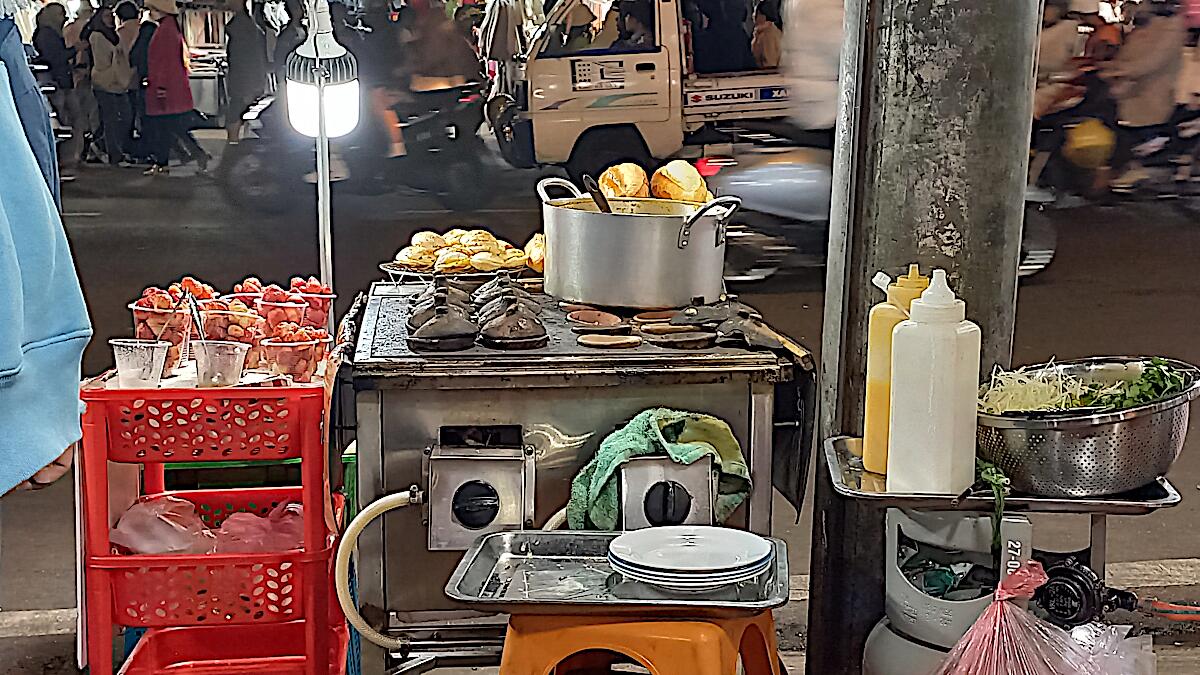 Zum Tagesabschluss besuchen wir den Nachtmarkt und futtern uns durch die Stände mit gegrilltem Seafood, pizzaähnlichen Fladen und Fischkuchen. Sogar einen Stand mit Glühwein gibt es, bei Temperaturen um die 15 Grad auf jeden Fall empfehlenswert.