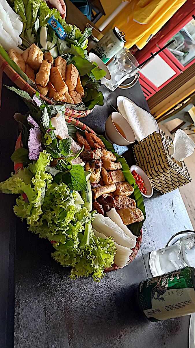 Im nächsten kleinen Ort finden wir ein tolles Restaurant, das Sommerrollen (natürlich zum Selberrollen) anbot, außerdem selbstgemachtes Joghurt. Toller Zwischenstopp.
