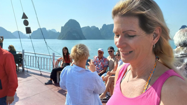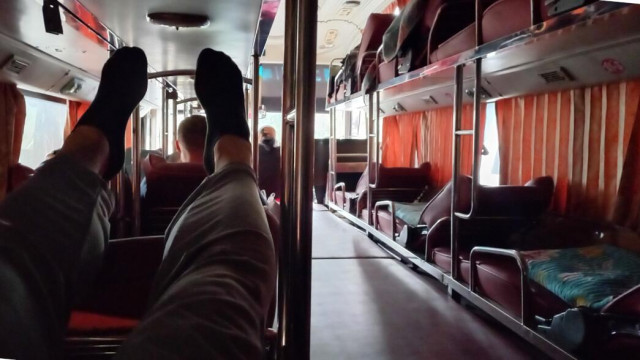Unser nächstes Ziel, die Ha Long Bucht ist 450 km entfernt. Wir buchen uns für diese Fahrt einen Liegebus, der um 8:00 in Sa Pa abfährt und dafür etwa 8,5 Stunden benötigt. Schon erfahren in asiatischen Busreisen ist die Variante im Liegen neu für uns, die klassische Aufgabenteilung, ich kümmere mich um das Einladen des Gepäcks, während Petra möglichst vorne in der Warteschlange ansteht funktioniert auch diesmal gut. Womit wir nicht gerechnet haben: Die Fahrgäste werden mit Namen aufgerufen und in den Bus gelassen. Natürlich die zehnköpfige Reisegruppe, die zuletzt am Bus angekommen ist, kommt zuerst rein. Wir dann nahzu zum Schluss. Einen vernünftigen Platz haben wir dennoch bekommen. Der vietnamesische Apple Cider kam am Vortag harmloser rüber und lässt uns, gepaart mit dem frühen Aufstehen gut ein paar Stunden während der Fahrt schlafen.