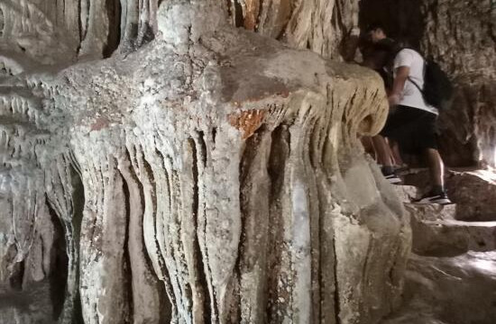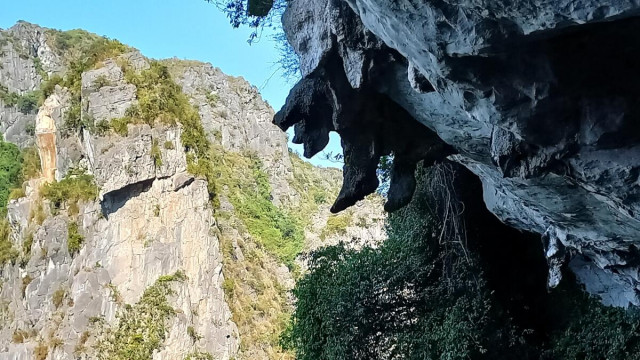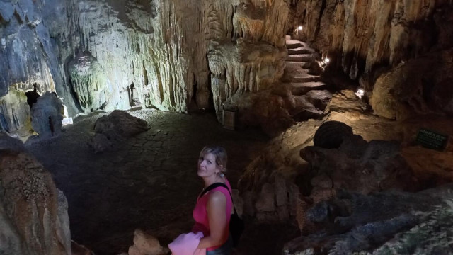Die nächste Höhle ist die Luon Cave, die das Innere der Karstformation mit Wasser flutet und zum Kajak oder Bamboo Boat fahren einlädt. Kleine Affen auf den Felsen bestaunen die vielen fremden Affen auf ihren Booten.