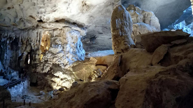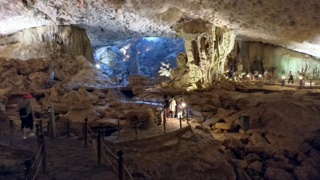 Vorbei an den Fighting Cock Islet und den Swan Islet besuchen wir die Sung Sot Cave, eine der größten Höhlen der Ha Long Bay mit mehr als 10.000 qm.