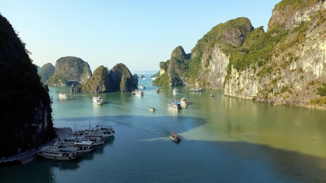 Die Ha Long Bay ist dagegen sehr sehenswert. Ein besonderes Bild durch die vielen Karstinseln die majestätisch aus dem Meer aufragen.