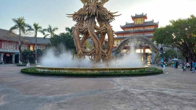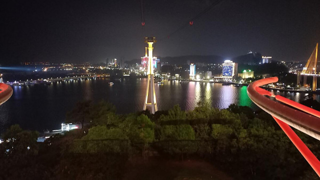 Eine riesige Seilbahn verbindet die beiden Halbinseln die Ha Long bilden. Wir beschließen mit dieser zu fahren und werden unerwartet am anderen Ende mit einer sehr schöne Parkanlage mit Tempeln, einer Sommerrodelbahn und mit herrlicher Aussicht über Ha Long belohnt. Alles, die ganze Stadt wirkt wie ein großes Disneyland.