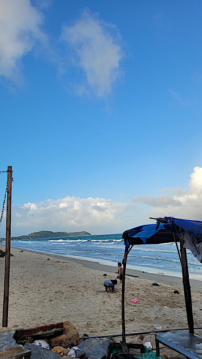 Zu einem der schönsten Strände in Vietnam, den Doc Let-Strand, (laut Internet-Recherche) fahren wir ca. 60 km auf unserem Roller. Erstmal haben wir diesen Strand verpasst und landen in einem kleinen Fischerdörfchen. Da wir sehr hungrig sind, bestellen wir uns einen Seafood-Hotpot. Zum Glück erklärt uns eine der Frauen, die in dem Restaurant arbeitet, „erklärt“, wie man einen solchen Hotpot isst (Sie konnte kein Englisch): Zuerst die Stengel von den Kräutern, Salat und Grünzeug entfernen. Dann das Seafood in den Topf mit kochender Brühe hinein geben, der auf einem Gestell vor uns steht. Anschließend schließlich Seafood, Grünzeug und Brühe sowie die weißen Nudeln, die ebenfalls vor uns stehen, in eine kleine Schüssel schöpfen und essen- sehr lecker! Dazu gibt es noch verschiedene Saucen in kleinen Schälchen, mit denen man das schon würzige Gericht noch intensiver würzen kann.