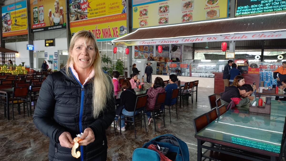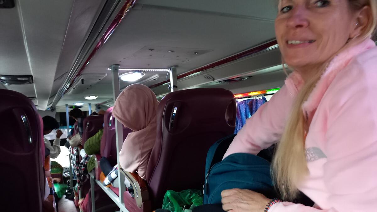 Die Fahrt nach Sa Pa absolvieren heute mit dem Liegebus. Die Strecke kann man auch mit einem Nachtzug im Schlafabteil bewältigen, allerdings wohl mit Umsteigen. Daher entschließen wir uns den Bus zu nehmen, der für uns doch etwas ungewöhnlich ist. Beim Einsteigen heißt es erst einmal Schuhe ausziehen und dann durch zu unseren Liegesitzen.