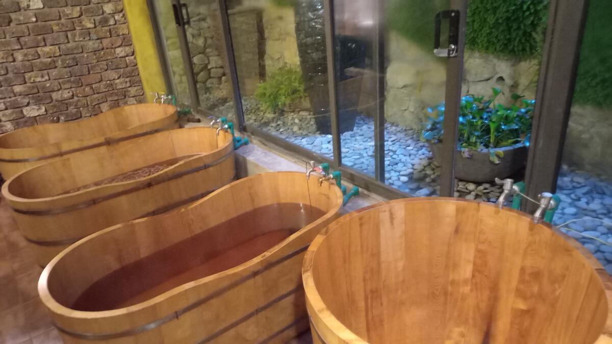 Nach einem kleinen Spaziergang zum Dao Spa mit einem sehr schönes Spa mit Sauna, Massage und Kräuterbädern gönnen wir uns ein erholsames, heißes Kräuterbad.