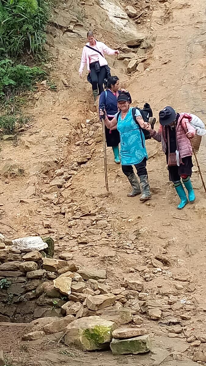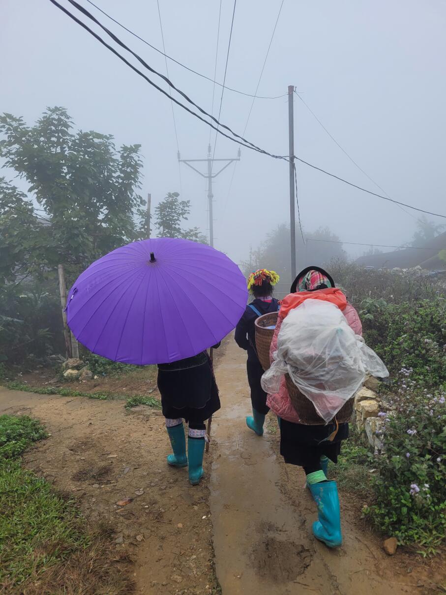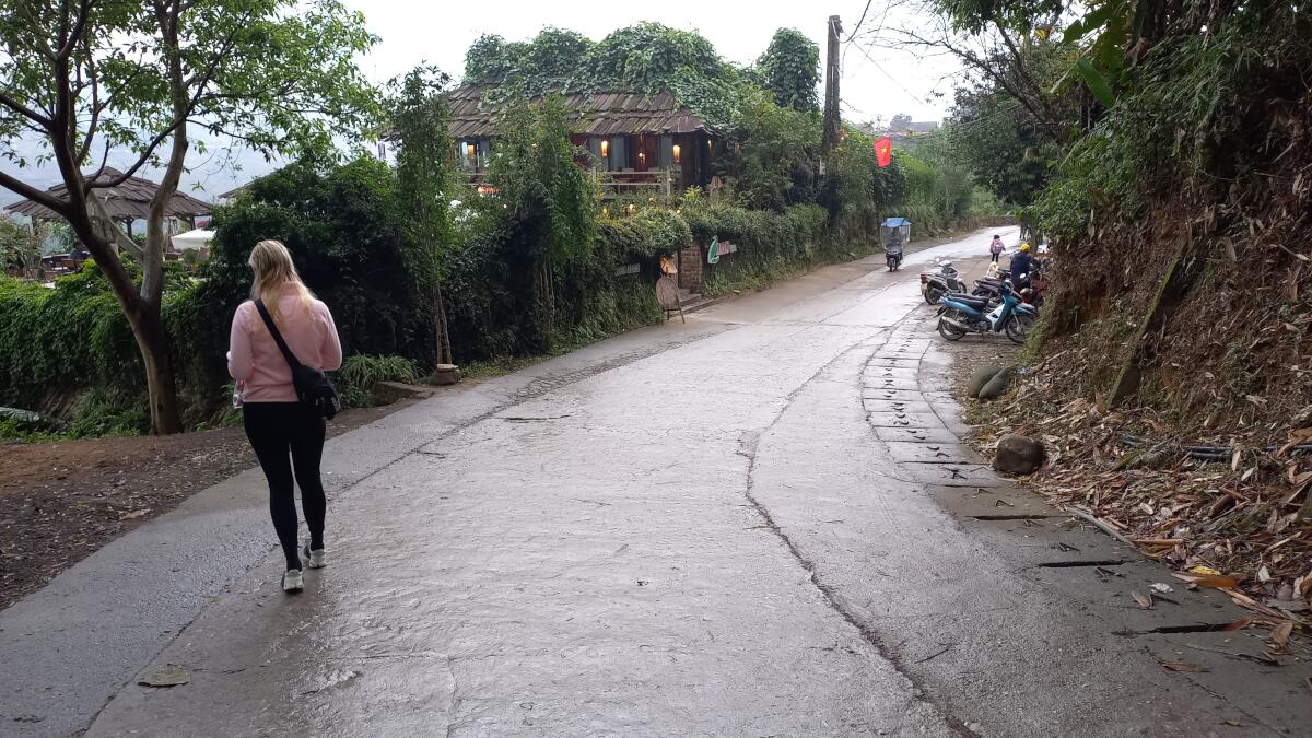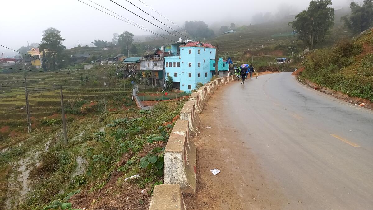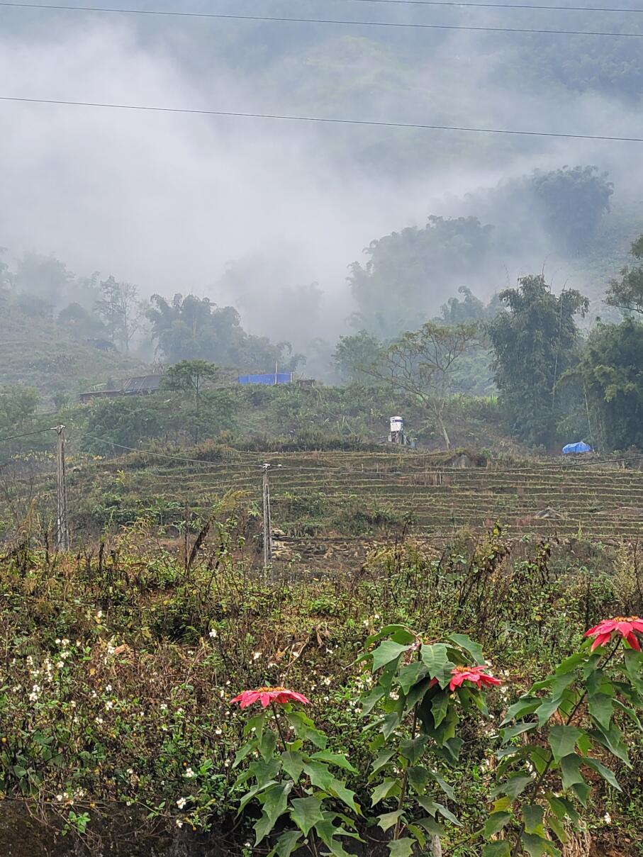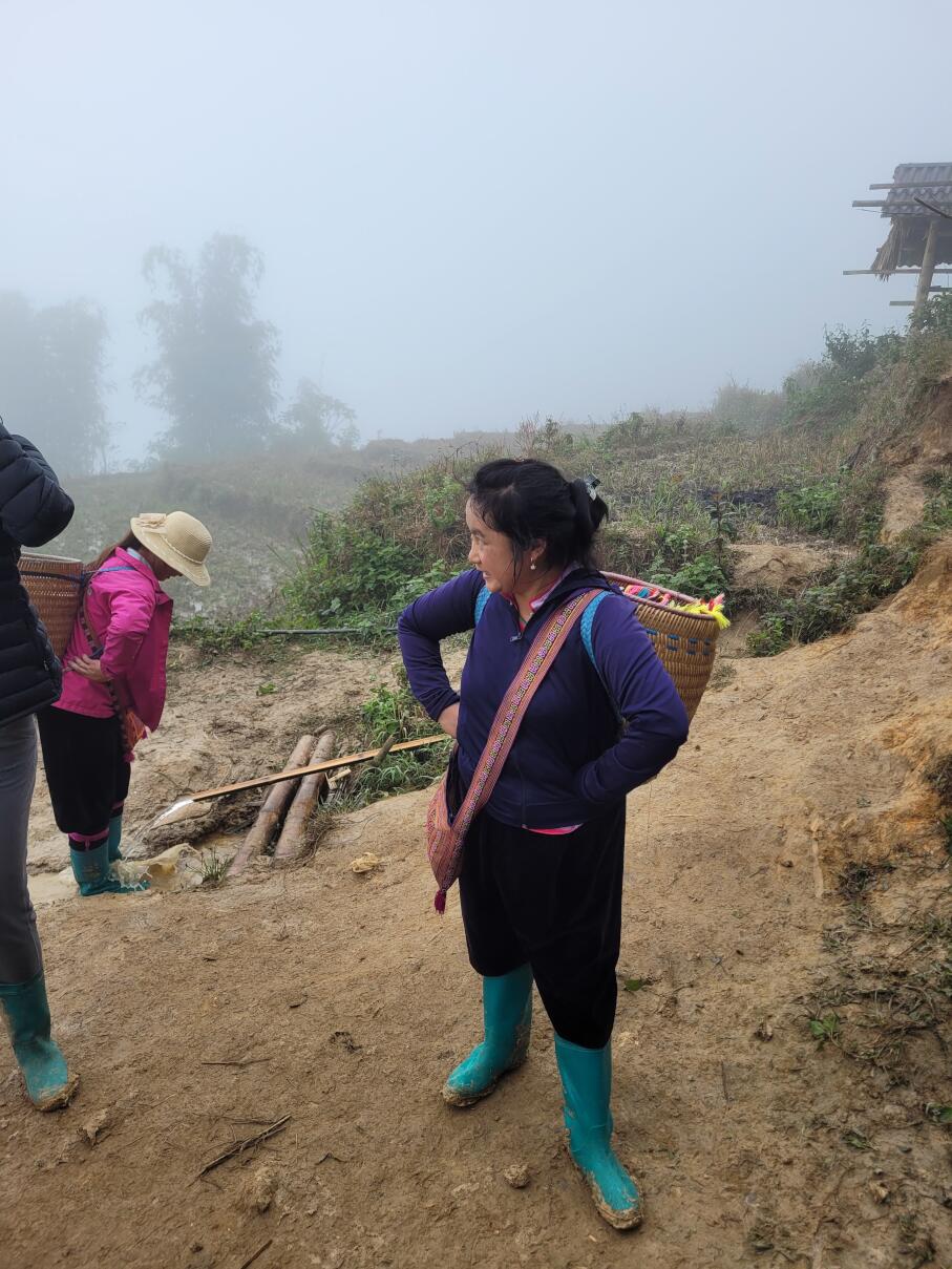 Leider ist es bei unserem Aufenthalt um den 5. Dezember sehr neblig und nieselig, keine gute Aussicht. Von Sa Pa aus nehmen wir ein Taxi in die in die etwa 10 km entfernte Provinz Lao Cai. Ein kurzer aber knackiger Anstieg am Berg und dann Einchecken im Homestay von Hmong Sisters and Mama Zizi. Man muss sich auf einfache Verhältnisse einlassen und wir teilen uns ein Gemeinschaftsbad, haben aber zumindest ein eigenes Zimmer.