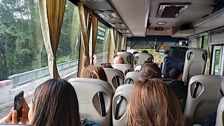 Der Bus steht schon fünf Minuten vor dem vorgesehenen Zeitslot vor der Türe, weshalb das Zimmertelefon leutet und die freundliche Rezeptionistin uns dies mitteilt. In Windeseile packen wir die letzten Teile in die Koffer und stürzen zur Lobby. Der Bus ist weg.