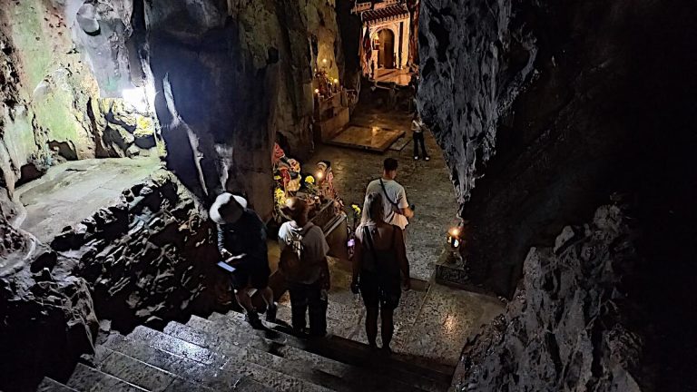 In Da Nang angekommen wartet die letzte Zwischenstation unserer Reise, die Marble Mountains. Hier wurde bis ins Jahr 2008 Marmor aus steil aufragenden Bergen abgebaut. Um sie als Touristische Attraktion zu erhalten, wurde der Abbau verboten. Im inneren der Berge findet man einige Tempel und auf dem Gipfel eine weitreichende Aussicht über Da Nang hinaus.