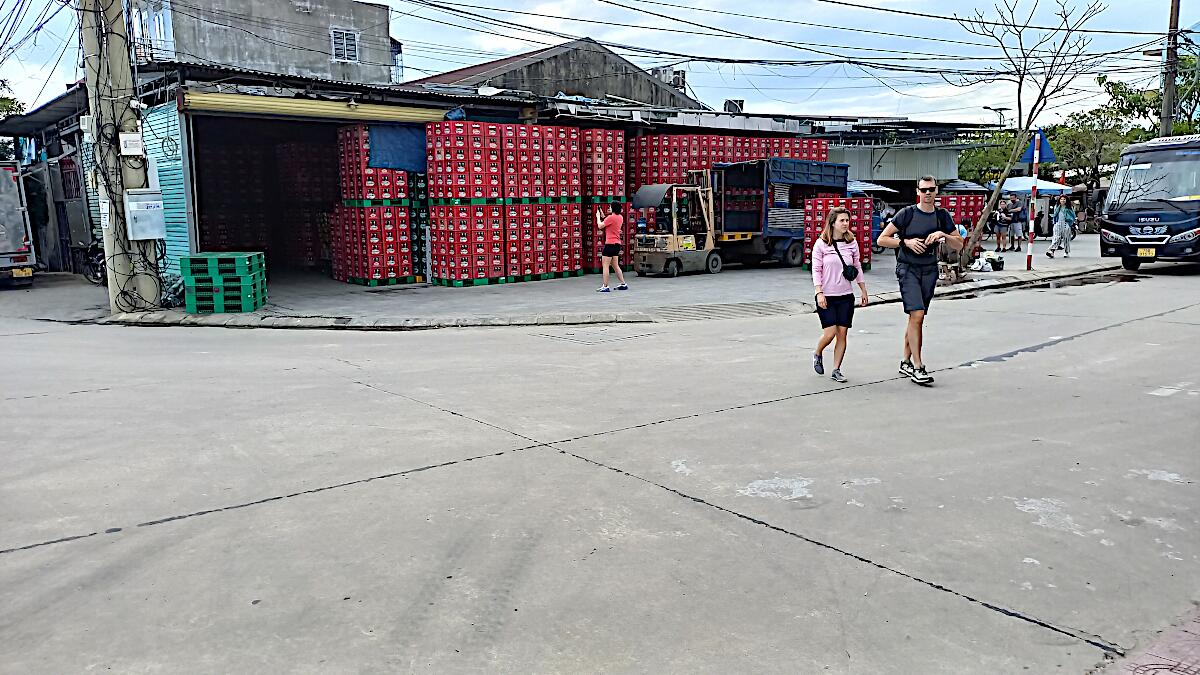 Da er noch weitere Fahrgäste einsammeln muss, ist er schon mal weiter gefahren und soll in fünf Minuten wieder da sein. Wir hoffen noch gute Plätze zu bekommen. Die ca. 150 km lange Strecke nach Hoi An, inklusive Zwischenstopps an Sehenswürdigkeiten und einem Erdnussbutterbaguette haben wir für 250.000 VND, ca. 10 EUR pro Person gebucht.