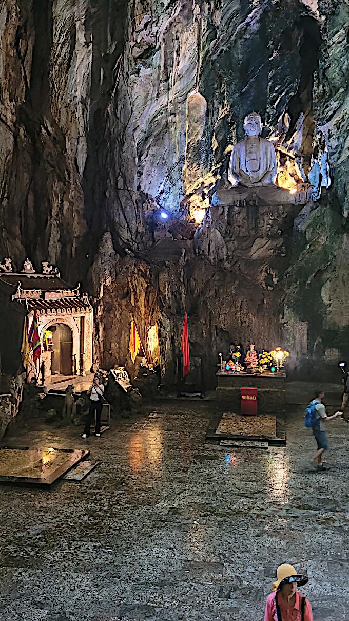 In Da Nang angekommen wartet die letzte Zwischenstation unserer Reise, die Marble Mountains. Hier wurde bis ins Jahr 2008 Marmor aus steil aufragenden Bergen abgebaut. Um sie als Touristische Attraktion zu erhalten, wurde der Abbau verboten. Im inneren der Berge findet man einige Tempel und auf dem Gipfel eine weitreichende Aussicht über Da Nang hinaus.