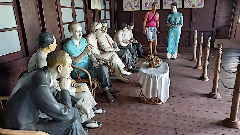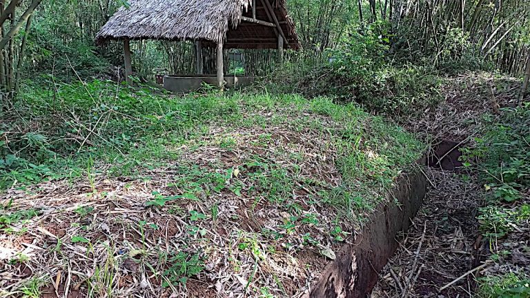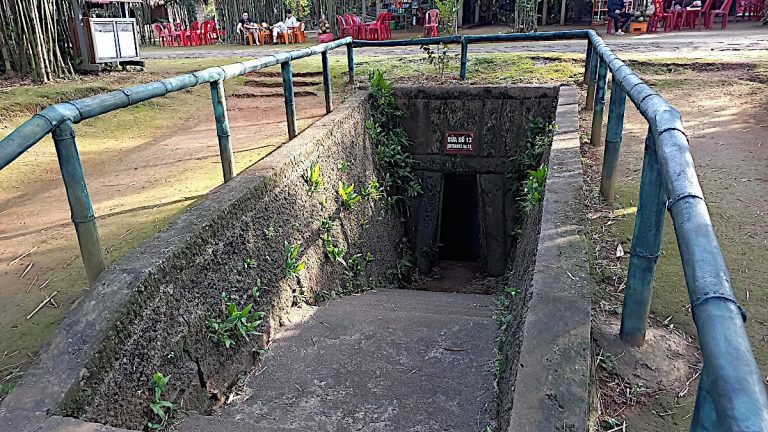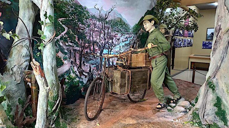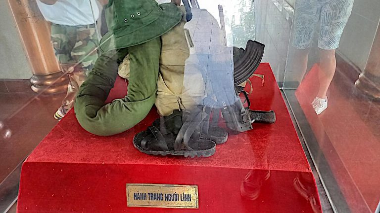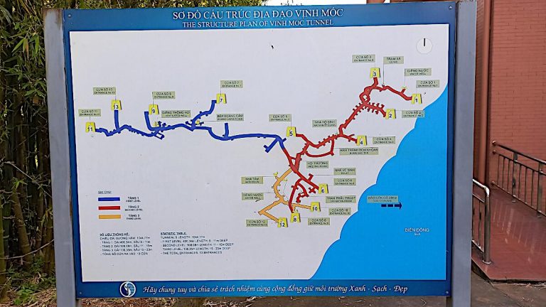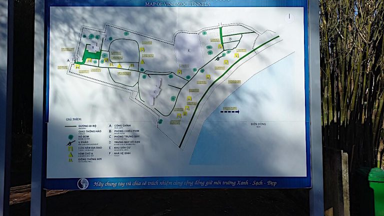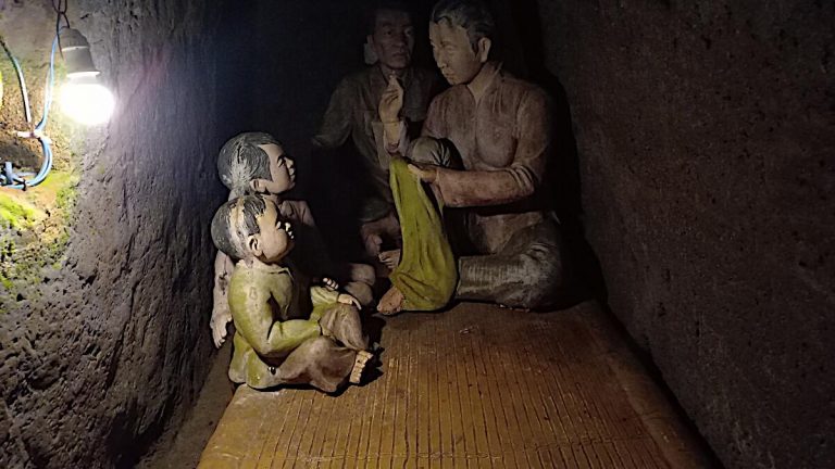 Die letzte Station auf der heutigen Tour führt uns schließlich nach Vinh Moc, wieder an der Küste. Hier befindet sich ein dreistöckiges Tunnelsystem. Vinh Moc galt als ein wichtiger Ort auf der Nachschublinie des Militärs. Während des zweiten Indochinakrieges wurden pro Einwohner etwa sieben Tonnen Bombenmaterial abgeworfen. Um überlegen zu können, haben die Bewohner innerhalb von zwei Jahren diese Tunnelanlagen mit Wohnräumen, Gemeinschaftraum, Sozialräumen und einer Entbindungsstation eingerichtet. 17 Säuglinge sollen hier geboren worden sein.