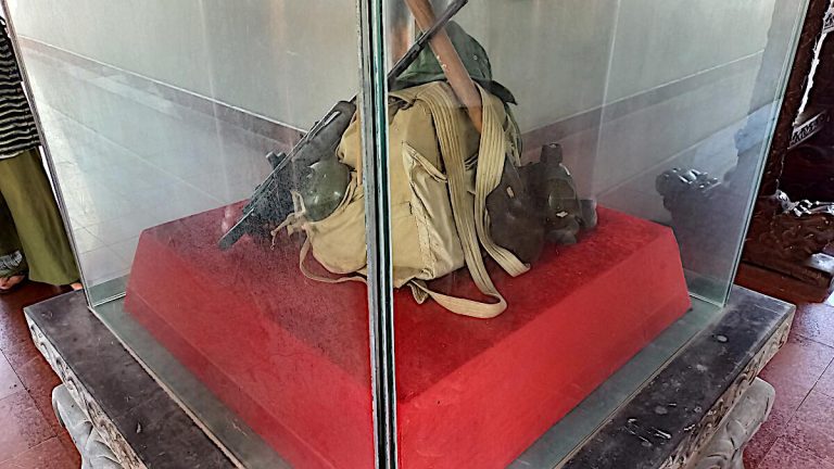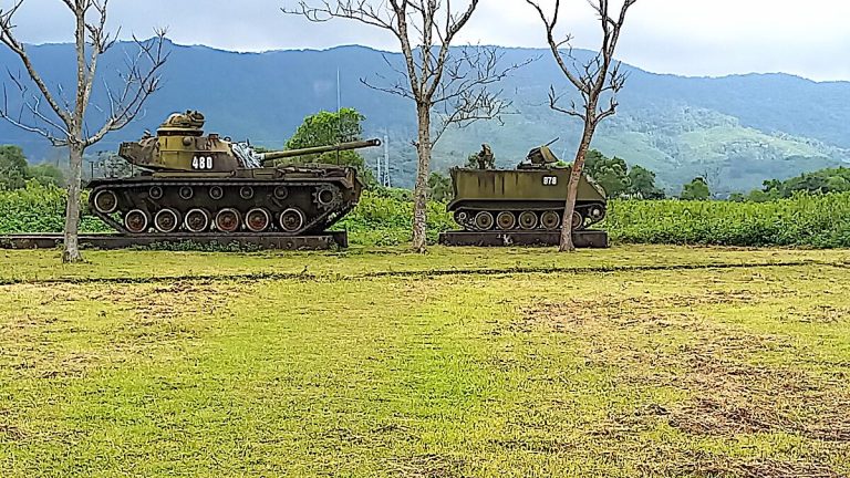 Vorbei an der Brücke von Da Krong, einer strategisch wichtigen Brücke auf dem Ho Chi Minh Pfad, kommen wir in Khe Sanh nach der laotischen Grenze an, wo sich eine alte US-Airbase befindet. Einige Panzer, Helikopter und ein Flugzeug sind hier neben Grabenanlage und Flugabwehrbunker zu besichtigen.